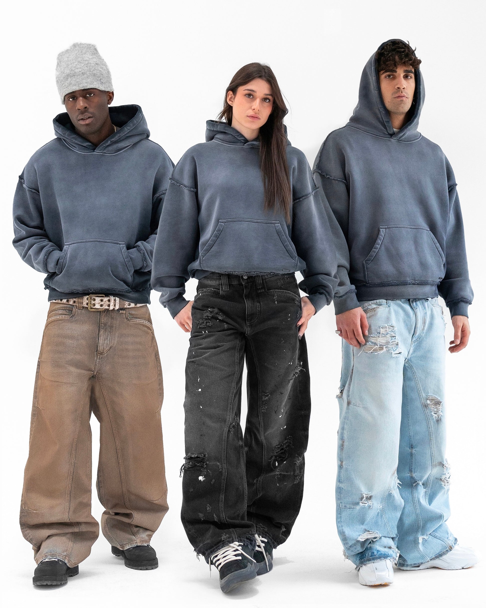 - Boxy fit.